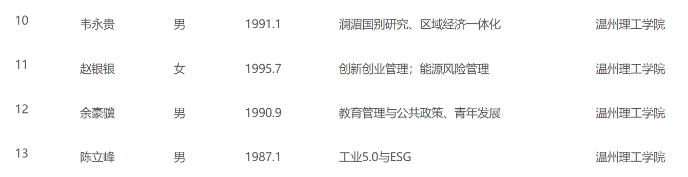 经单位推荐、资格初审、专家评审,温州市社科联党组研究,拟确定25人入选“瓯江青年社科学者”,我院韦永贵、赵银银、余豪骥、陈立峰老师(以姓氏笔划数为序)顺利入选“瓯江青年社科学者”拟入选公示名单,具体如下: