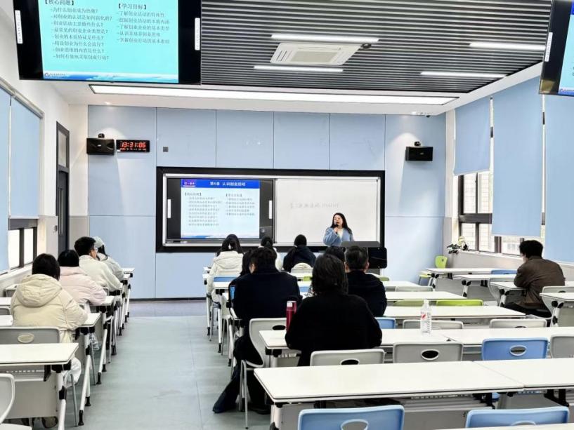 课后研讨中,与会教师充分肯定张老师的教学投入与课堂把控能力。大家认为,张老师精神饱满、备课充分,案例选择贴近实际,能够有效引导学生建立对创业活动的系统认知。