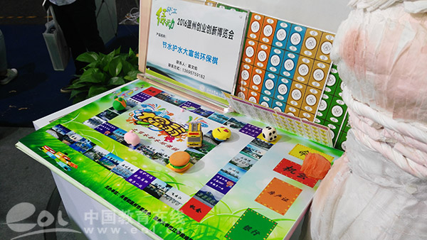 “以大富翁游戏为参考,把温州的主要河流、海岛、海域和一些著名的旅游景点绘制在节水护水环保棋中,并在环保棋中融入一些节水的好习惯和应该改正、远离的坏习惯”。这款由温州大学瓯江学院绿萌环保协会倾心打造的大富翁环保棋在温州市区各小学非常流行。