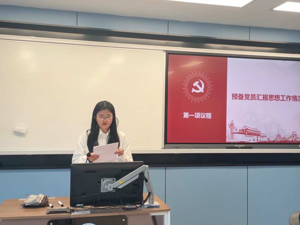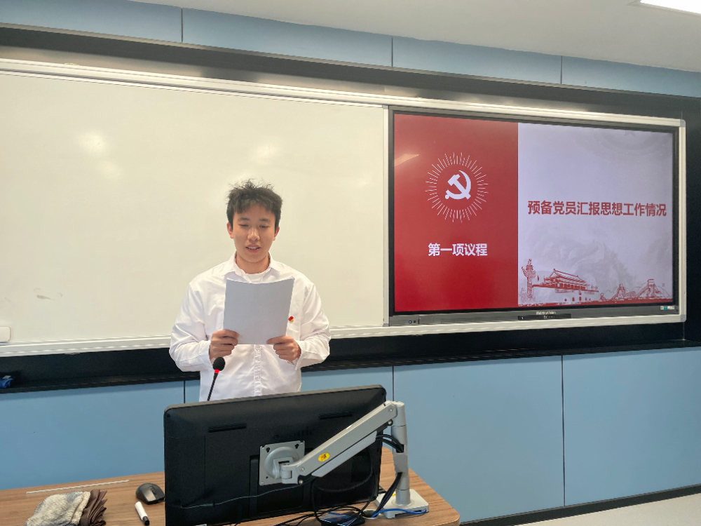 大会第一项议程,由俞叶蓁、李昕玥同志宣读转正申请书,汇报自己在预备期间的表现,说明缺点和不足,表明自己的态度和决心,向党组织说明有关问题和情况。之后,由麻宇腾同志介绍预备党员在预备期间的表现情况,并对两位同志是否能按期转正表明意见。